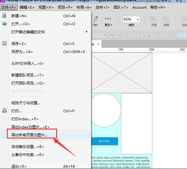 如果需要导出整个原型图,点击菜单栏的文件——导出所有页面为图片,即可导出所有的页面内容。