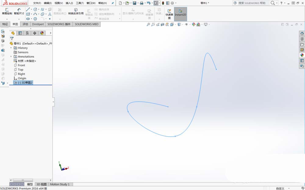 我们知道电线都是几股线子缠绕的,想要制作这种曲线缠绕的效果,该怎么制作呢?今天我们就来看看SolidWorks中随意绘制两条互相缠绕曲线的教程。