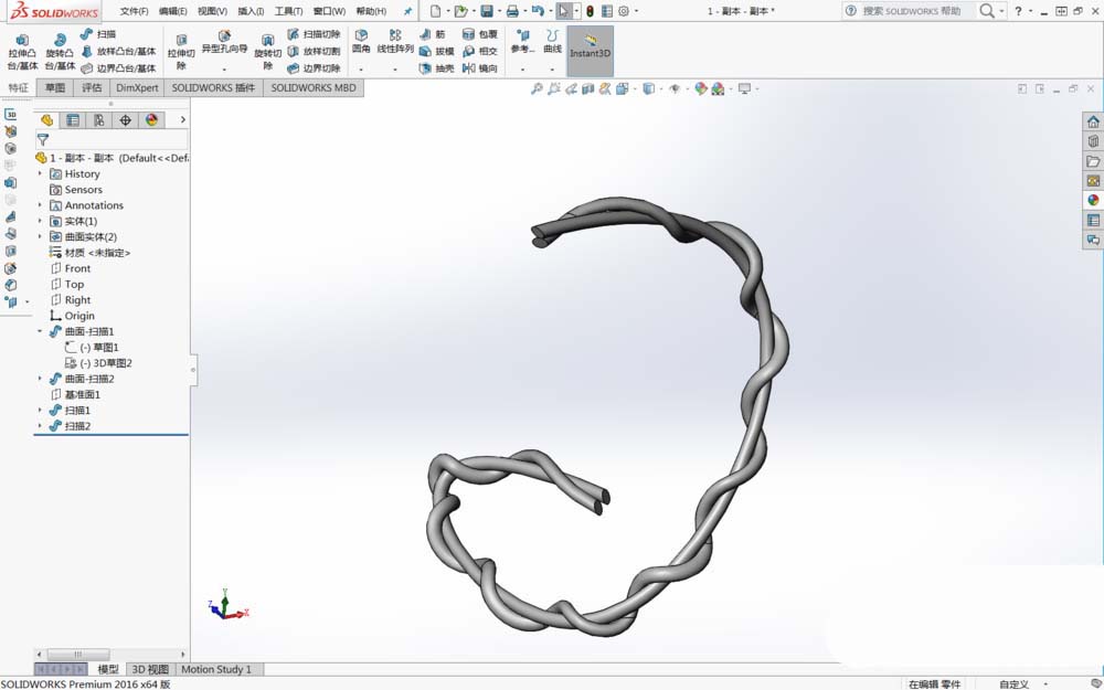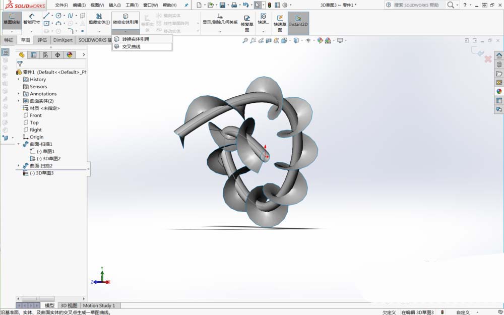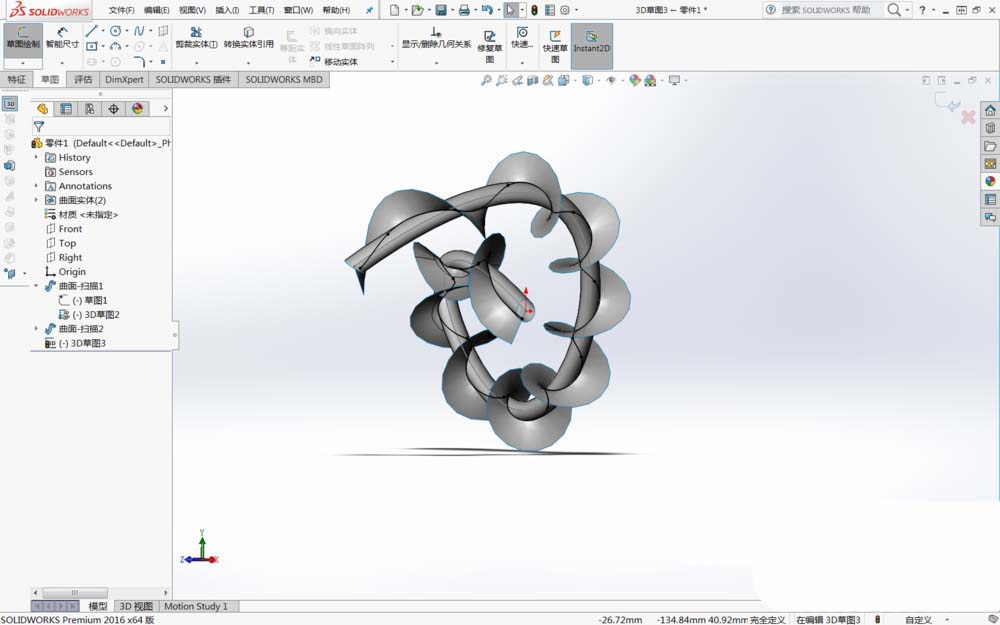 以上就是SolidWorks两条互相缠绕的曲线的制作方法,希望大家喜欢,请继续关注脚本之家。