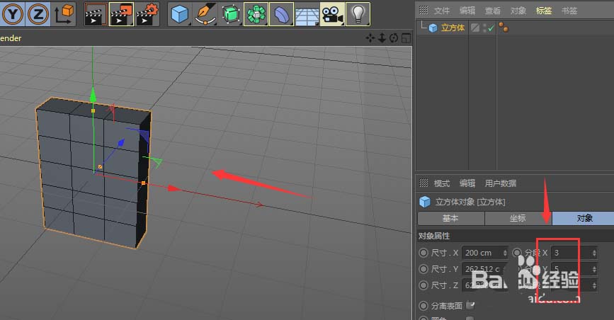 2、打开属性菜单,设置XYZ轴的分段,如图