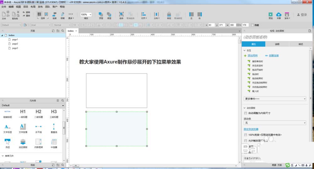 4、同样,我们在制作一个下拉菜单的动态面板,并命名,如下图所示。