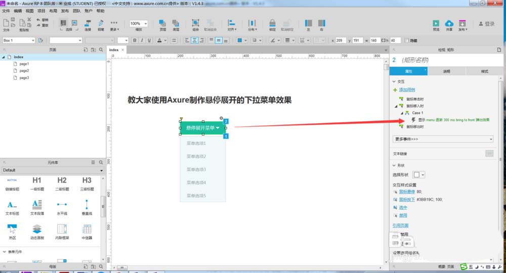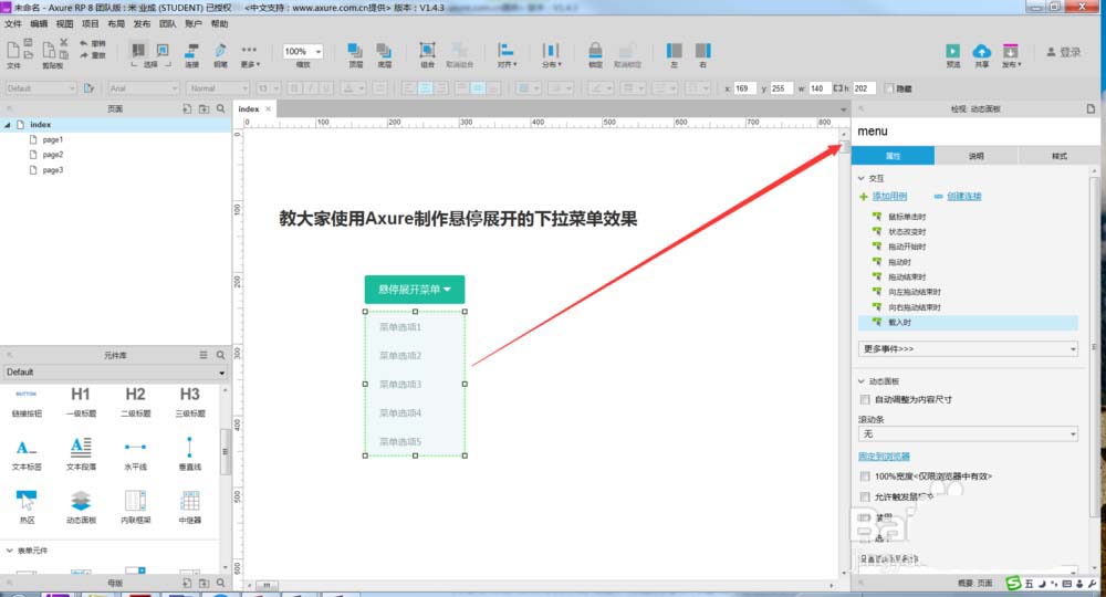 Axure中想要制作悬停展开的下拉菜单效果,该怎么制作呢?下面我们就来看看详细的教程。