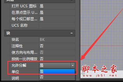 2、也可以使用快捷键CTRL+1,打开特性面板窗口,找到“块”,在允许分解参数下拉框选项中,选择”是“就行了。