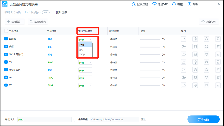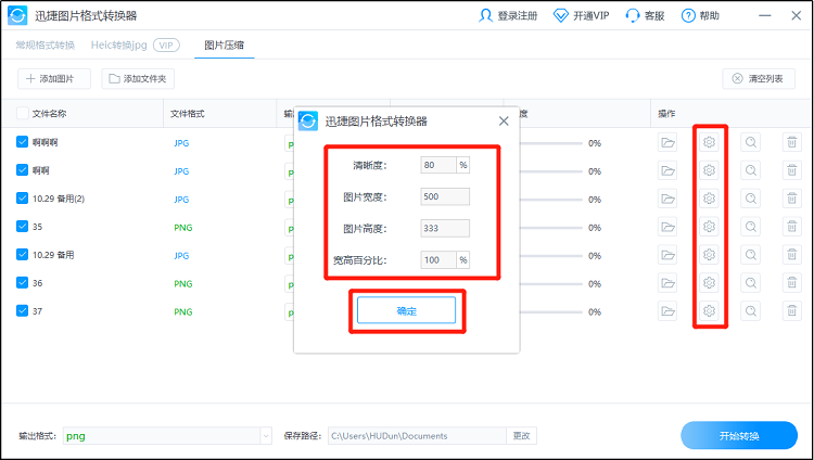 5.完成设置后,选择图片的【保存路径】,然后就可以点击【开始转换】,将图片进行处理。