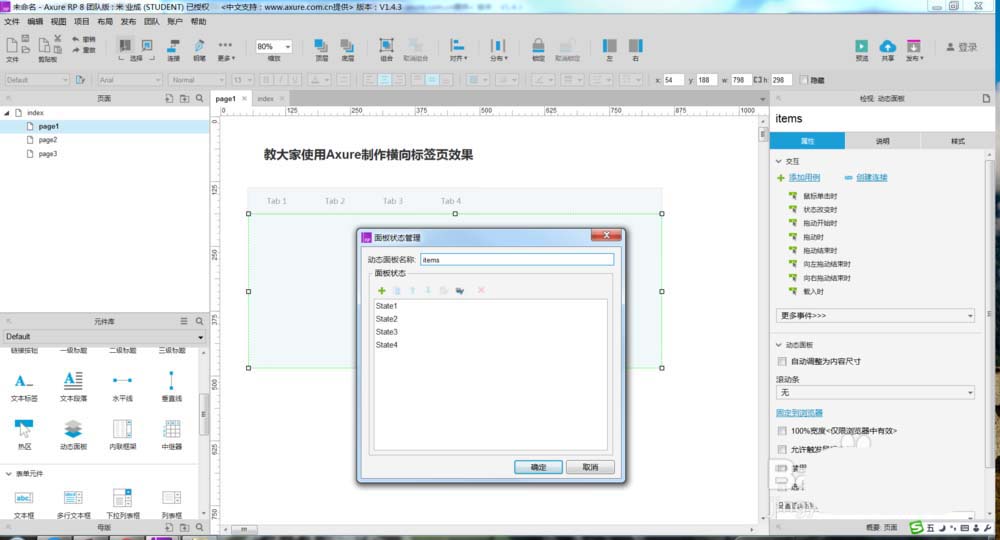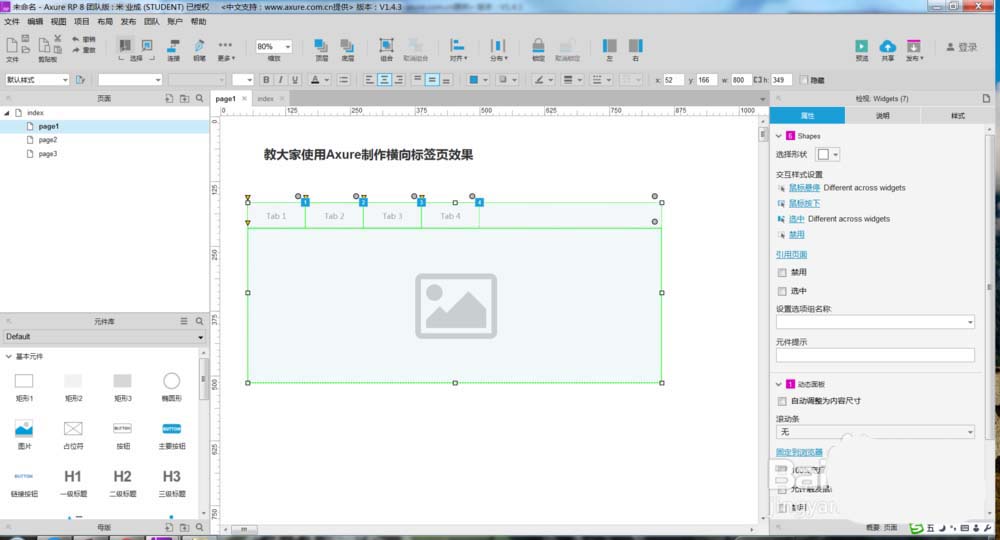 Axure想要制作横向标签页效果,该怎么制作横向标签页呢?下面我们就来看看详细的教程。