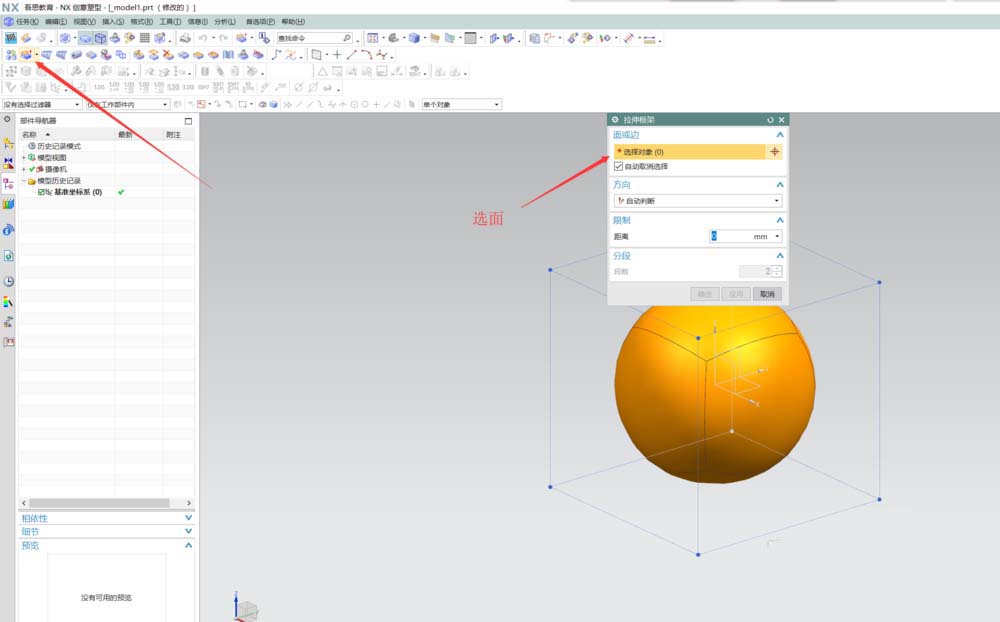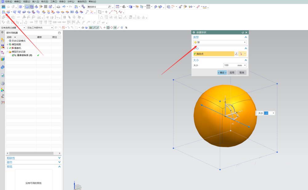 1、打开UG软件,进入创意塑形模块,创建一个球体