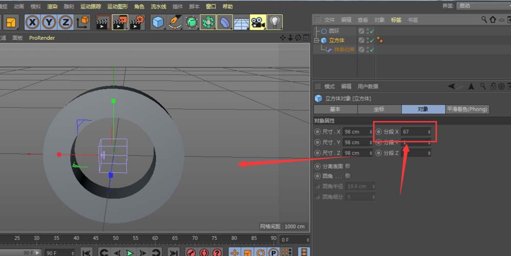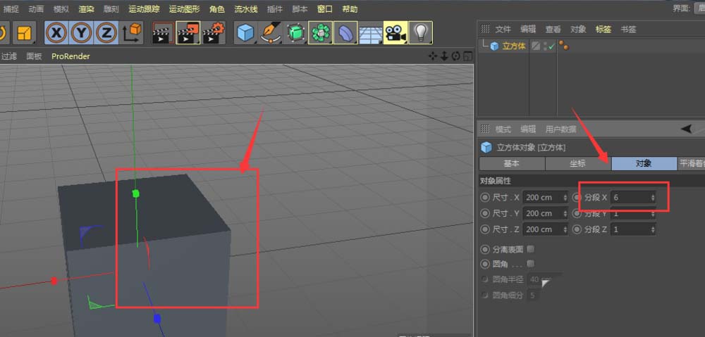 5、调整立方体模型X轴的分段数,将其调高,得到如图圆