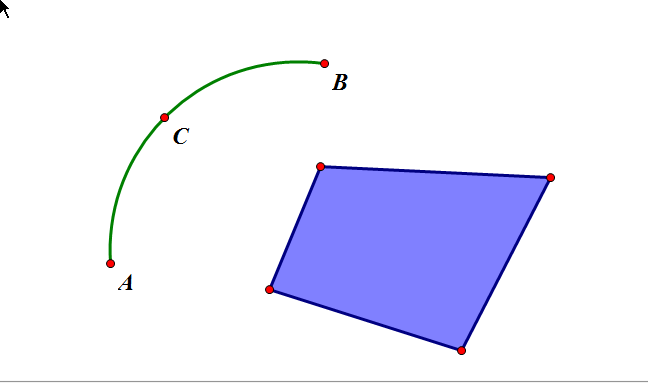 3、依次选中点A、C、B,然后点击构造中的过三点的弧,得到如图
