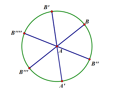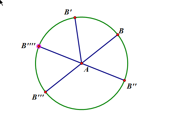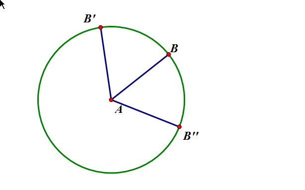 2、用点工具在圆上做一点B,并且双击点A,选中点B,点击点B,选中变换中的旋转,度数改为60°,得到点B’,分别点击点A和点B、点A和点B’点击构造中的线段