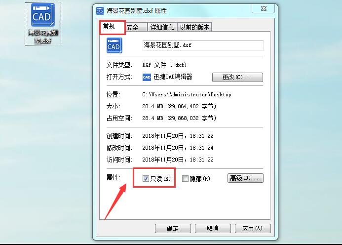 文件设置为“只读”格式(即CAD文件被保护)导致打开CAD文件无法进行编辑操作。