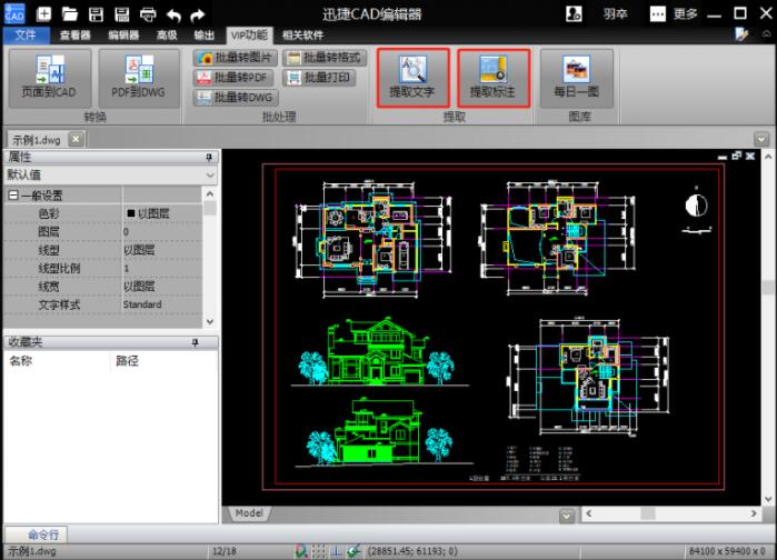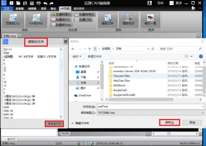 1.我们点 击【提取文字】的图标,然后在弹出的【提取的文字】弹窗中会看到这张CAD图纸中所 有的文字都显示出来了。