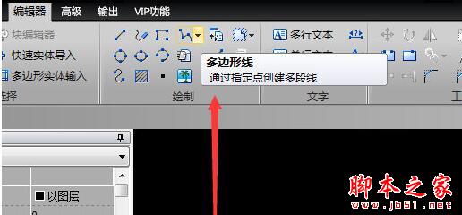 1、切换到【编辑器】选项卡,在【绘制】功能菜单中,找到并调用【多边形线】命令。