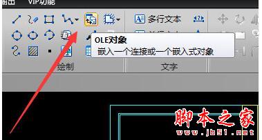 2、在【绘制】功能菜单中点击【OLE对象】按钮,调用该功能。
