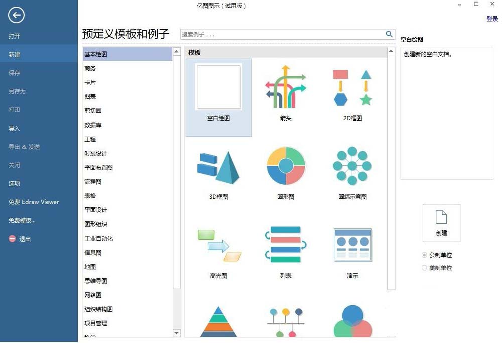 1、打开亿图图示软件,进入它的主界面;