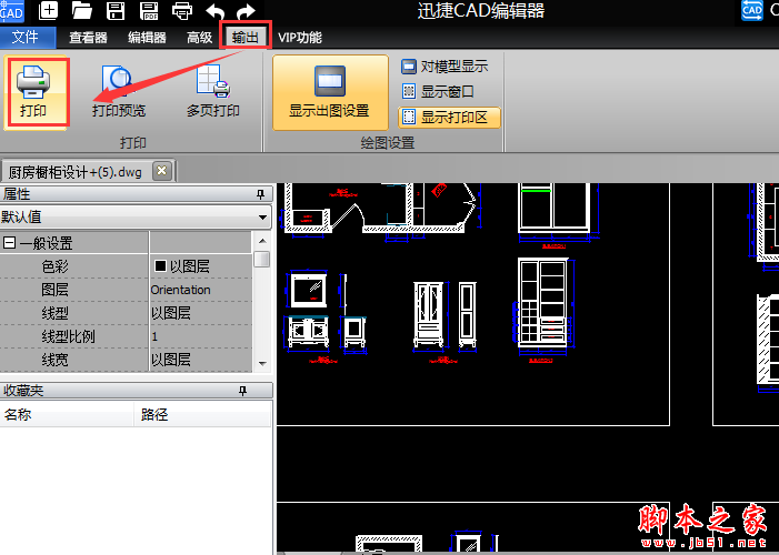 打开CAD图纸文件后,点击“输出”里的“打印”选项,进行文件打印