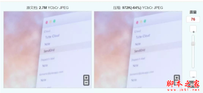 点击任务中的缩略图,可以使用滚动条来设置压缩级别,实时比较压缩前后的图像质量。