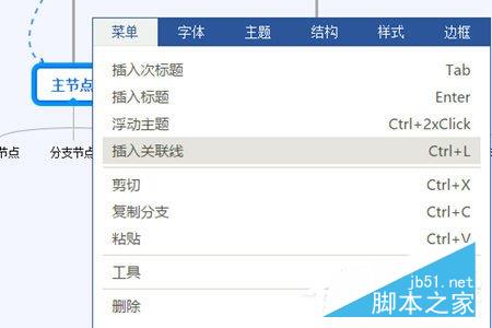 3、除了上面的方法之外,还可以通过右键点击节点,在弹出的选项框中选择“插入关联线”或者使用快捷键“Ctrl+L”。