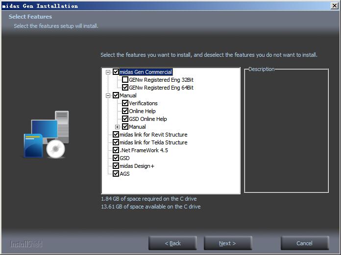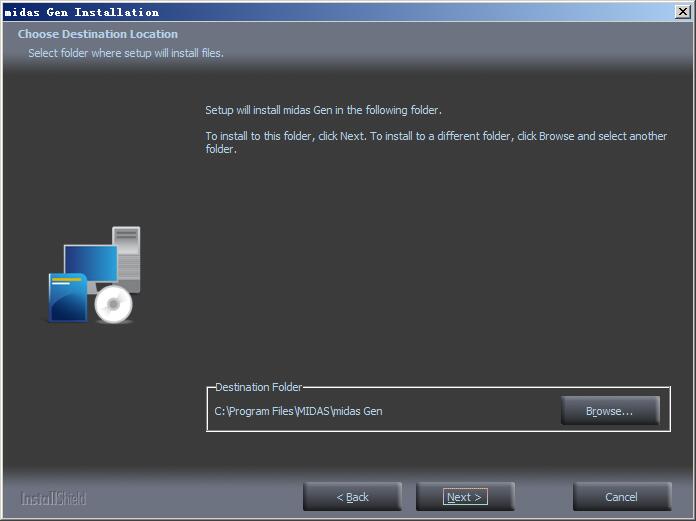 4、选择软件安装目录,默认为“C:\Program Files\MIDAS\midas Gen”