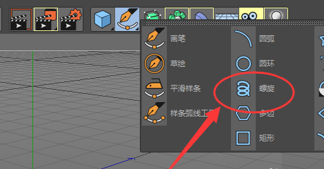 1、在线条栏中找到螺旋属性,点击建立