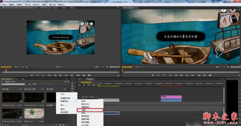 鼠标右击项目窗口,选择【新建项目】——【字幕】,如图,