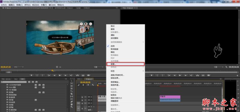 点击播放预览,你能看到手指抖动的效果,选中两个轨道,选择【嵌套】,可以得到一个嵌套序列,把它加入项目中,你可以得到手指抖动的这一素材,将素材添加到视频中。