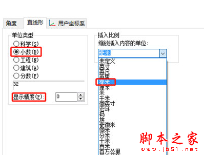 你可以在“直线型”数据下,通过设置单位类型为“小数(D)”、显示精度设置为0、插入比例设置为毫米来确定精度。