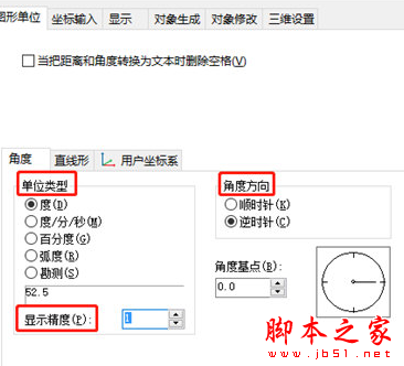 你可以在“角度”数据下,设置“单位类型”、“角度方向”、“显示精度(P)”等,自定义相应需求设置。
