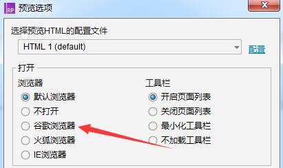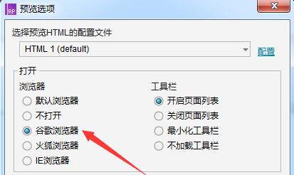 弹出预览选项窗口,勾选【谷歌浏览器】,你也可以选择其他浏览器,