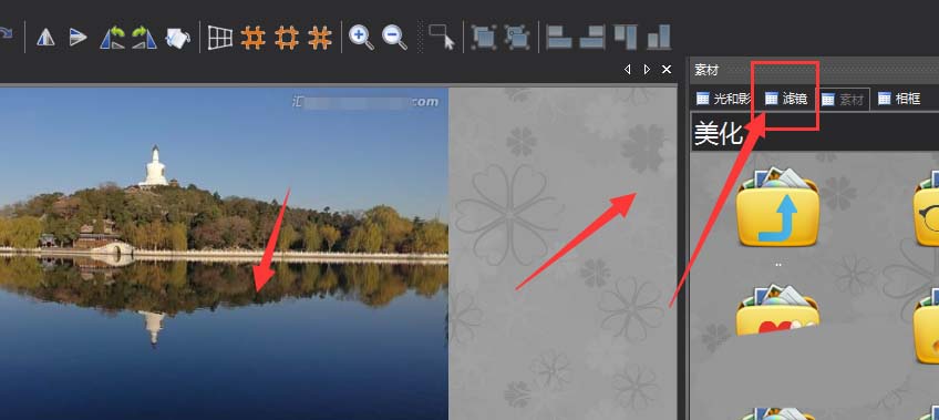 2、如图选择插入图片后,继续选择右侧的滤镜属性