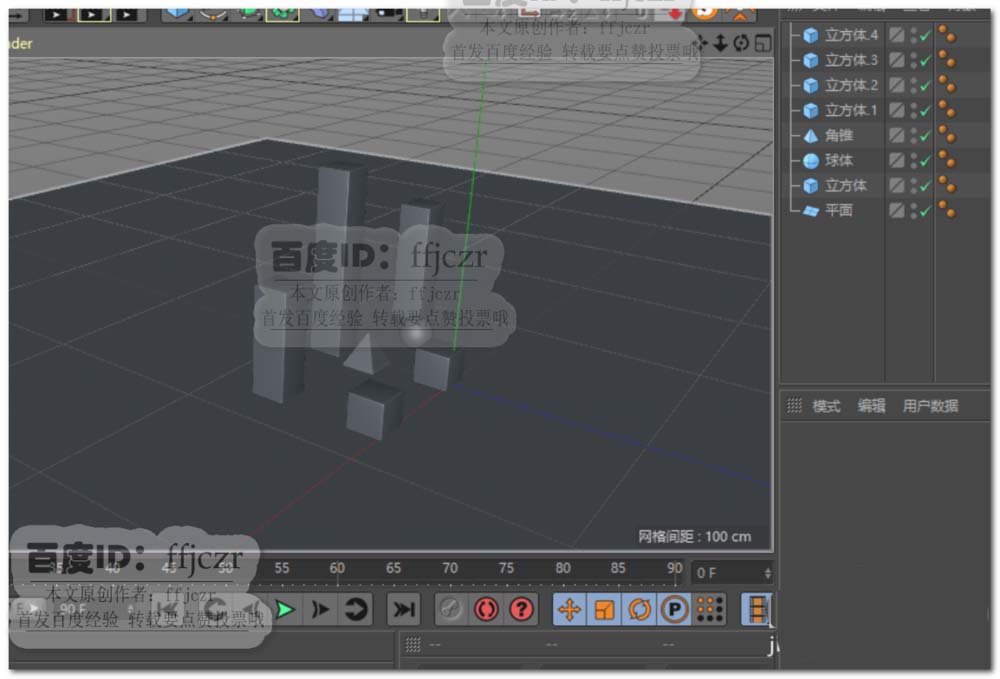 2、在地面上创建一组不同形状的对象。对象在本文中不重要,只要有对象在场景中即可。