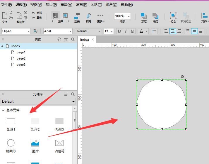 1、打开axure软件,选择左侧工具栏中的形状建立