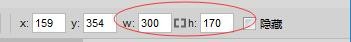 2、另一种方式是在工具栏的w和h中设置宽度和高度值。原来宽300,高170
