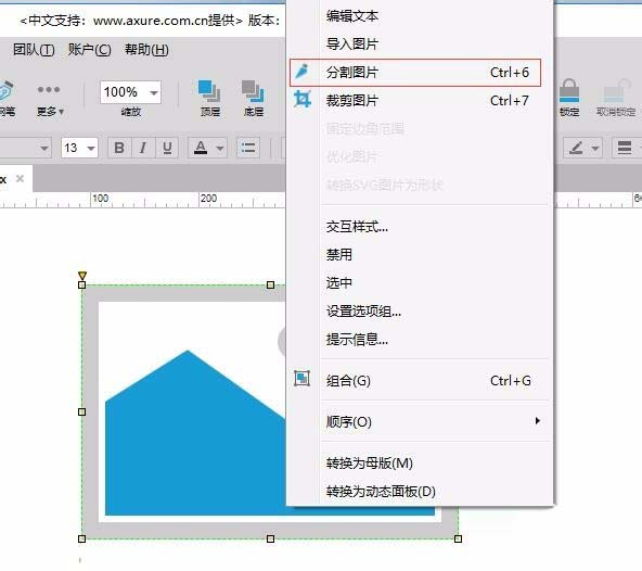 4、在Axure中提供了图像分割功能。选中图片,右键|分割图片