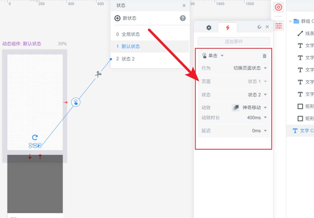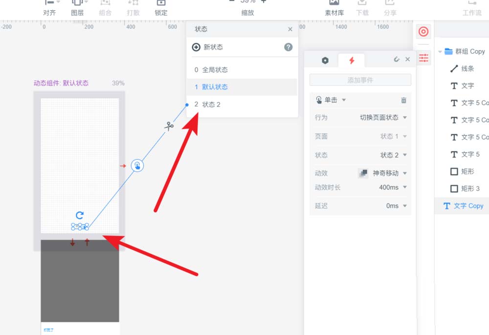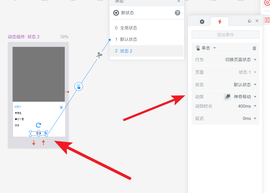 7、最后把状态2的交互做好,简单的动态组件,就做好了。