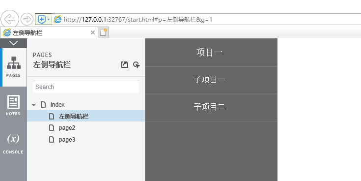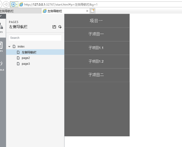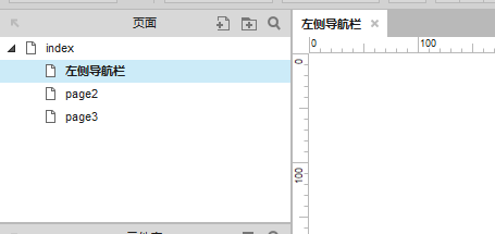 1、打开Axure,新建一个项目,命名一个页面为左侧导航栏,并双击打开