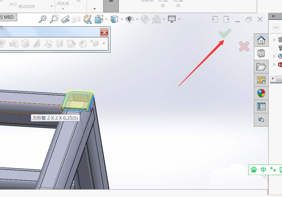 solidworks中用方形管制作一台设备的机架,所以就会存在一个端盖的东西盖住方形管上边,如何快速添加呢,下面我们就来看看详细的教程。