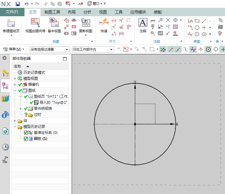 3、如下图所示,应用模块中点击“制图”,然后新建一个图纸页,创建一个工程图,作为后面的演示所用。