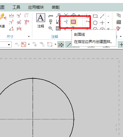 4、如下图所示,点击工具栏中的“剖面线”图标,激活该命令。