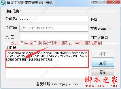 3.2、最后点击“生成”获得注册码,并将注册码复制