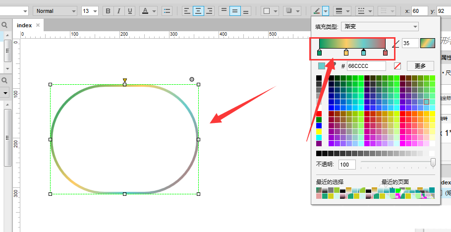 4、再打开线条渐变属性,当选择为渐变的时候,元件就会发生如图的改变