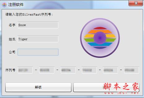 10.然后开始注册软件,复制输入注册机中的名字和序列号,点击解锁