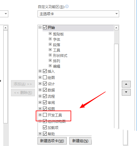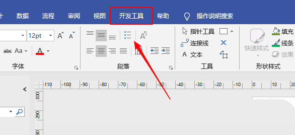 7、我们可以看到上方多了一个【开发工具】菜单项目。点击进入。