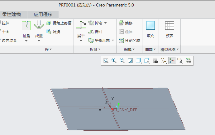 1、打开Creo5.0,新建一个钣金图纸,绘制第一壁