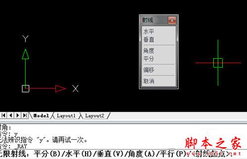 水平(H):平行当前UCS的X轴绘制水平射线。