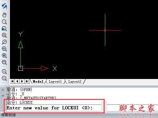 3、在下方命令行输入lockui,按回车键,然后再输入0,按回车就可以啦。