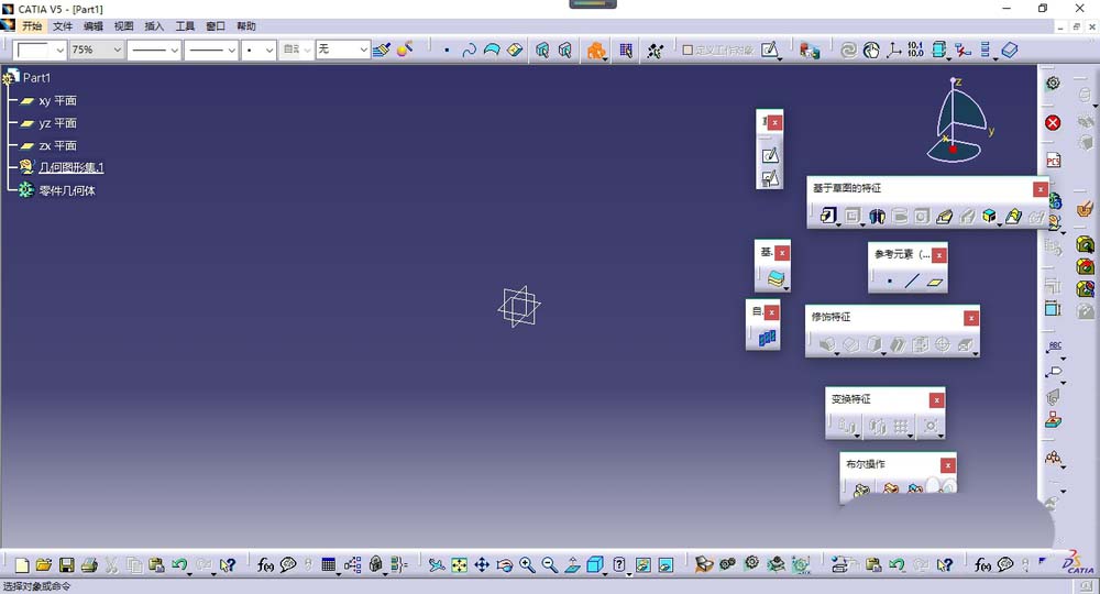 1、首先咱们打开catia软件,进入零件设计模块。如图所示。