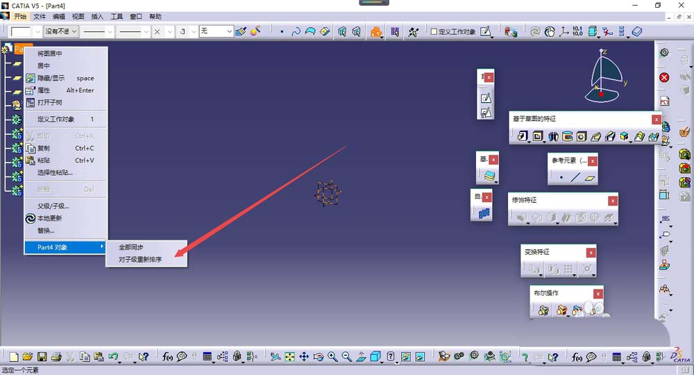 3、咱们点击part4,右击,找到对象,点击对子级重新排序。