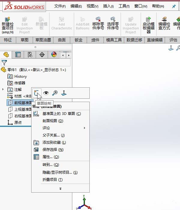 1、在左侧基准图上点击鼠标右键,选择草图绘制