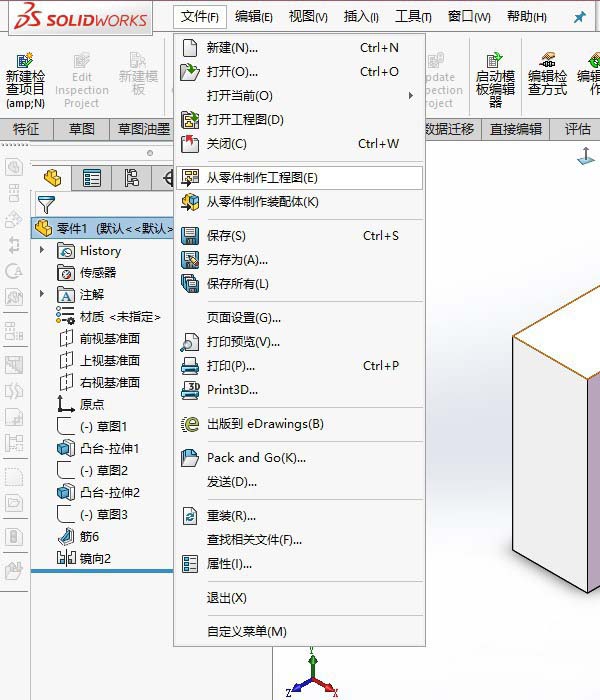 3、接着点击页面上方菜单栏当中的文件,在列表当中选择存零件制作图纸