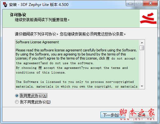 1.下载解压后双击"3DF+Zephyr+Lite+v4.500+(x64).exe"进行安装,选择简体中文安装